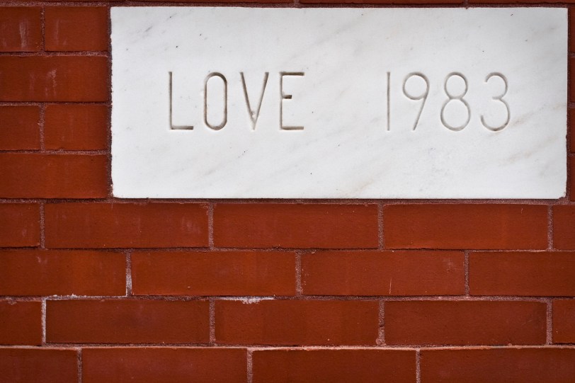 After the meditation I got together with my friend Pam. As we were walking, she pointed out these engraved stones on the brick building we were passing. I like this one below – because it made me think of 1983. I was 4 years old in nursery school. At that age, I probably only loved my parents, my sister, my dogs and my grandparents… oh, and maybe a Cabbage Patch Kid or 2 (yes, the Cabbage Patch phenomenon started in 1983). I think by the end there were 11 in my family. We were privileged children. Who did you love in 1983?