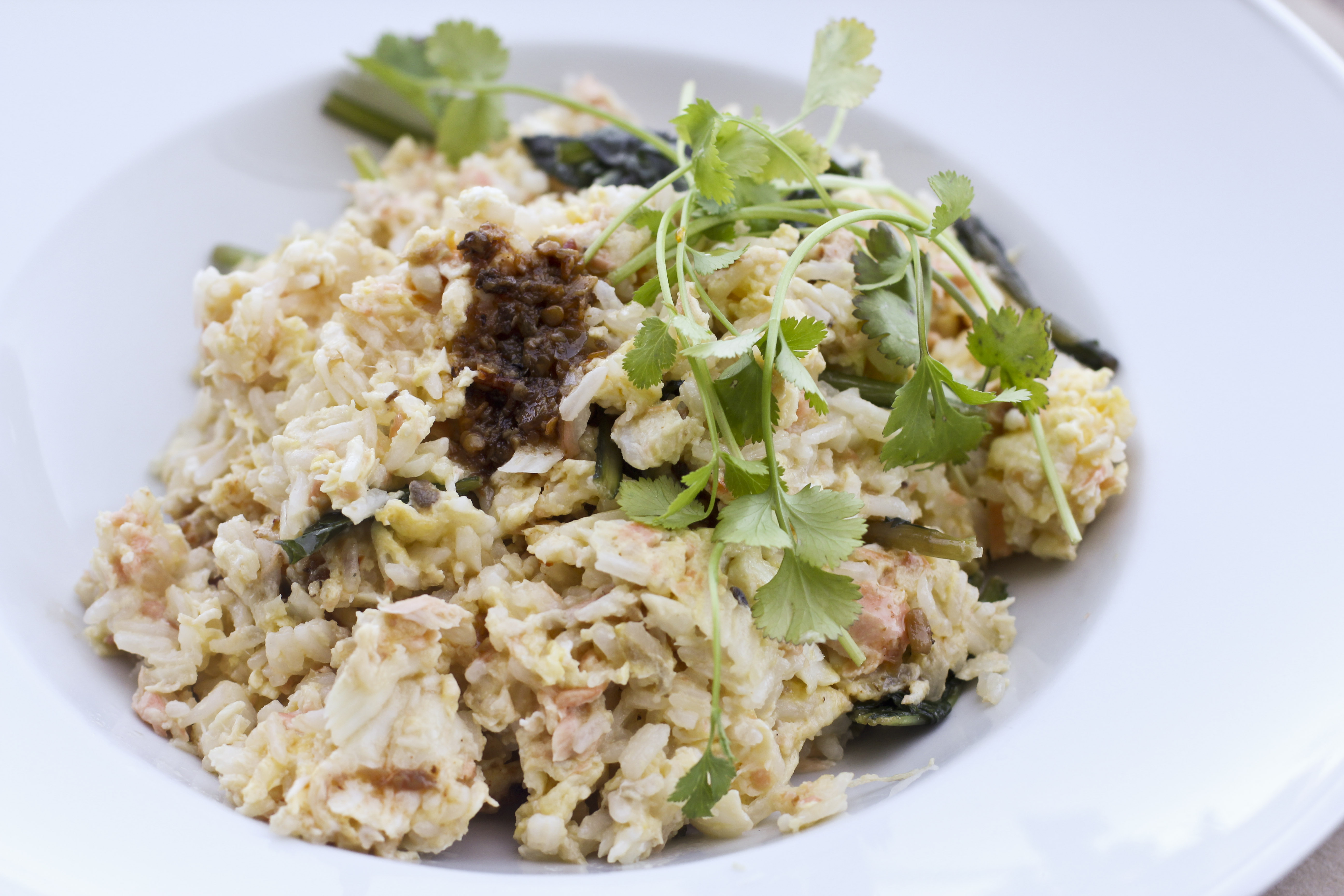 And finally, Ben ordered the spicy fried rice scramble with wild king salmon and Alaskan halibut.  I only had one bite of this dish – but it was a wonderful bite – with a lot of spice and a very light curry taste to it if I remember correctly.
