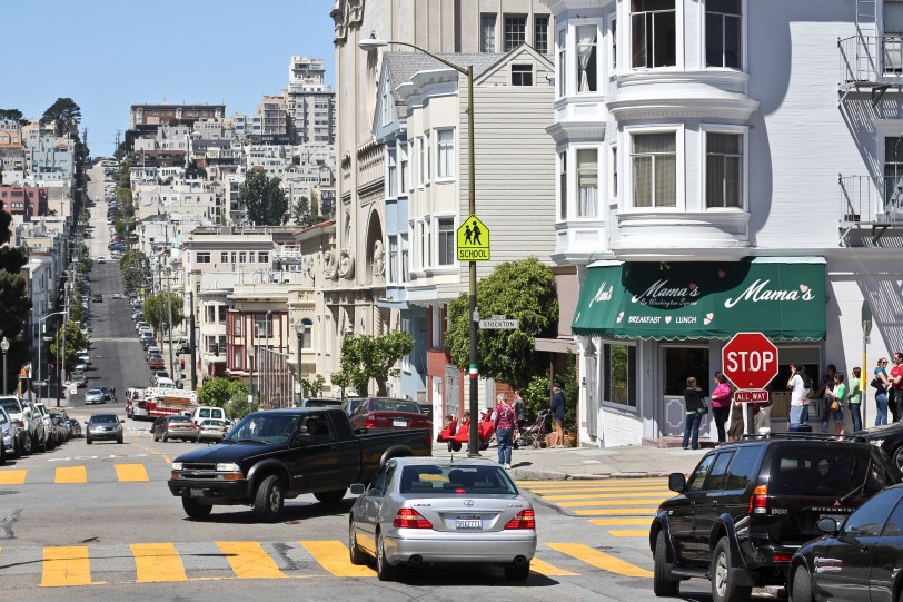 We started off for breakfast at Mama’s on Washington Square in North Beach at around 10am.  We met Adam’s brother Dave and his family – Noemi, Tomas & Michelle.  There was a line when we arrived, which gave us ample time to drool and obsess over the menu before we placed our orders at the counter.  Then, we were seated at a lovely round table in the back of the restaurant – a charming, cozy, homey little spot.