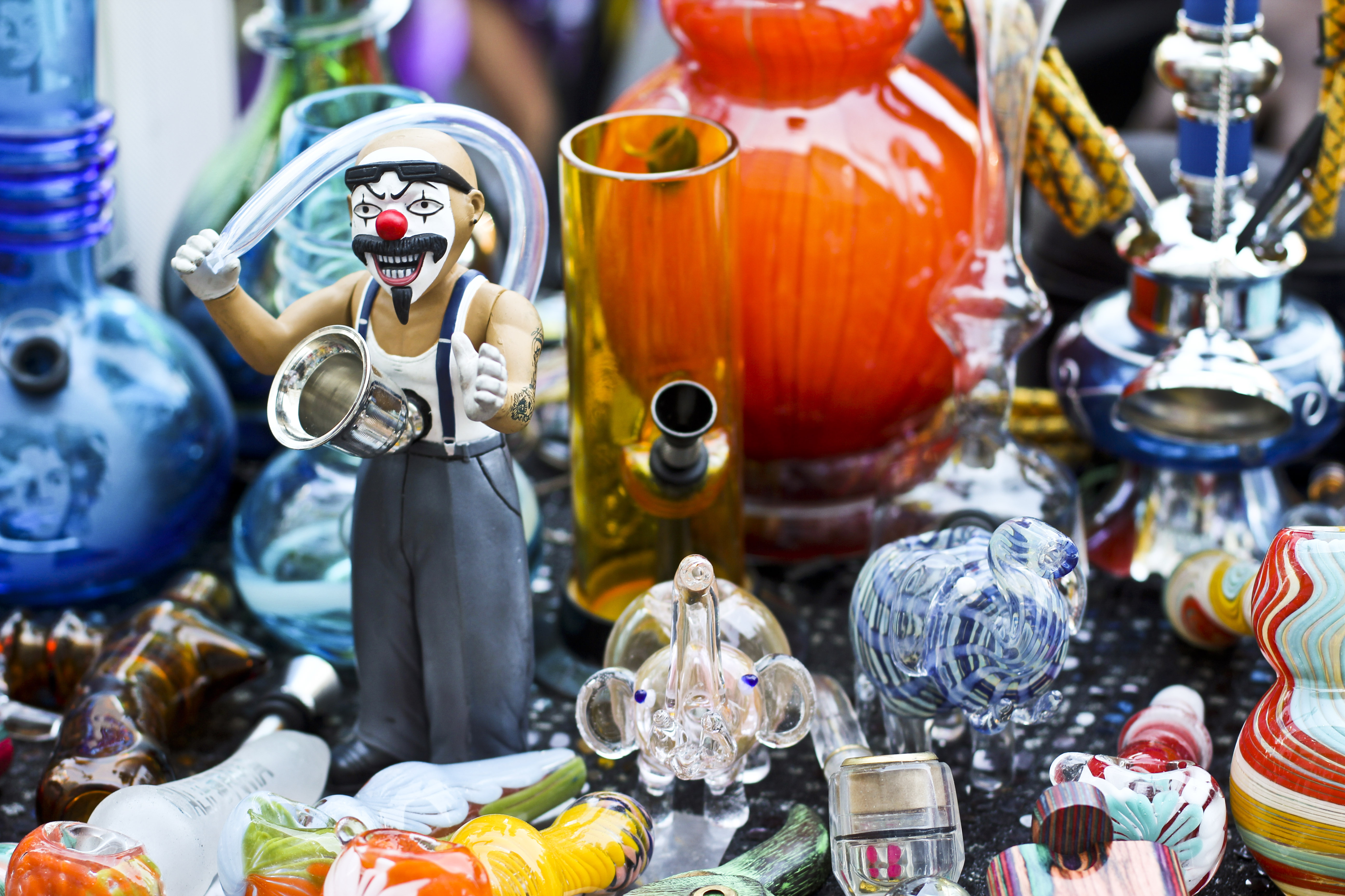 I took this picture in Union Square yesterday – right out in front of the Whole Foods. It was a table display of smoking apparatuses. I just think that clown has so much personality – in an evil spooky kind of way.