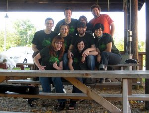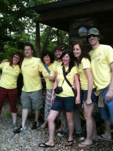 Let me first start by explaining “Squeenstock”.  We have a fabulous group of friends (I luckily inherited through Adam) that we used to do a weekly Sunday night dinner with.  Back a couple years ago – right when Adam and I first got together, one lovely lady in this group – Miss Courtney McClean (of Courtney McClean and the Dirty Curls), moved to Minneapolis.  We had a huge weekend-long farewell bash for Courtney, which was dubbed “Courtstock” – we designed t-shirts and had them made and wore them all over town as we mourned Courtney’s exit from NYC.  Then… the Jacksons (our Sunday night dinner hosts) were next to ditch NYC for greener pastures in Geneva, Switzerland.  Hence… super weekend-long goodbye party #2 – called “Jackstock”.  Following Jackstock, The Jacksons came back to NYC for a visit so Courtney flew in from Minneapolis, we designed & bought t-shirts again and we had yet another weekend-long welcome home party called “Backstock”.  Following this, was our wedding in the Berkshires in October – dubbed “Reidstock” (more t-shirts).  And finally – this brings us to this past weekend in New Orleans for our fellow stockers Dan & Yvonne who were married on Saturday.  Their last name is Pasquini… hence our 5th stock – “Squeenstock” (and more t-shirts).   This has turned into a pretty awesome ritual and a great excuse to get everyone together.  Next on the table… “Bangstok” (a group trip to Thailand?) – or “Burnstock” (a group trip to Burning Man).  Who knows??  Here are some pictures of the “stockers” from Squeenstock on the left and Reidstock on the right: