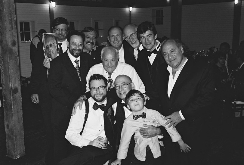 Here is a picture of the “Brooklyn Boys” from our wedding (boys only) – the guy in the middle is Irving – he is in his mid 90’s and looks & acts like he’s not a day over 40. He’s amazing.
