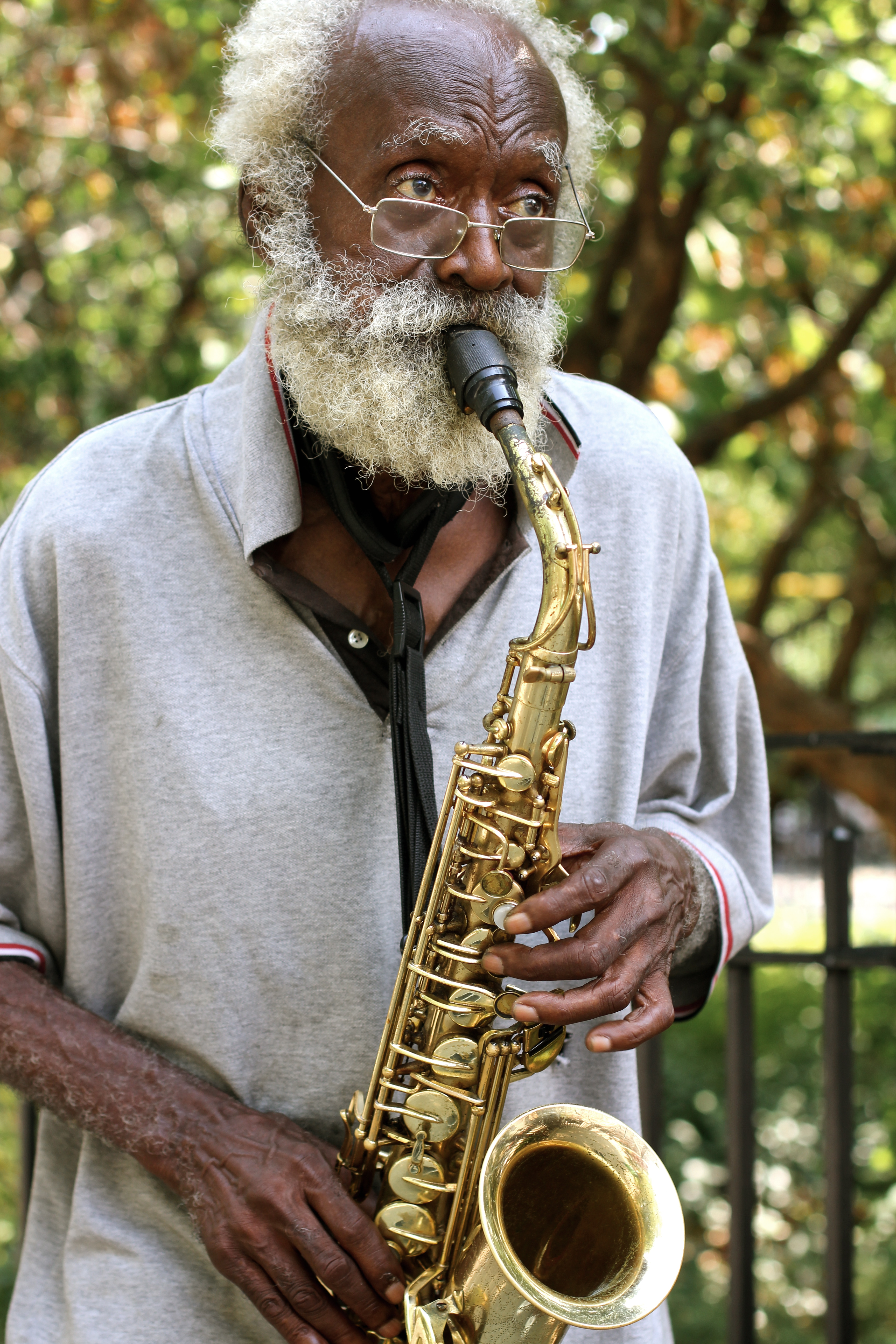I just did that and boy… I found quite a story! Turns out, he was a very talented and important avant-garde jazz musician in the sixties here in New York. He was trained at the New England Conservatory of Music and he even recorded a few albums. It seems he was somewhat mentally ill and heavily into drugs and in the seventies, he totally disappeared for decades – everyone thought he was dead. He was rediscovered again playing around Tompkins Square park in 2008. Here is a youtube video of him playing last year:
