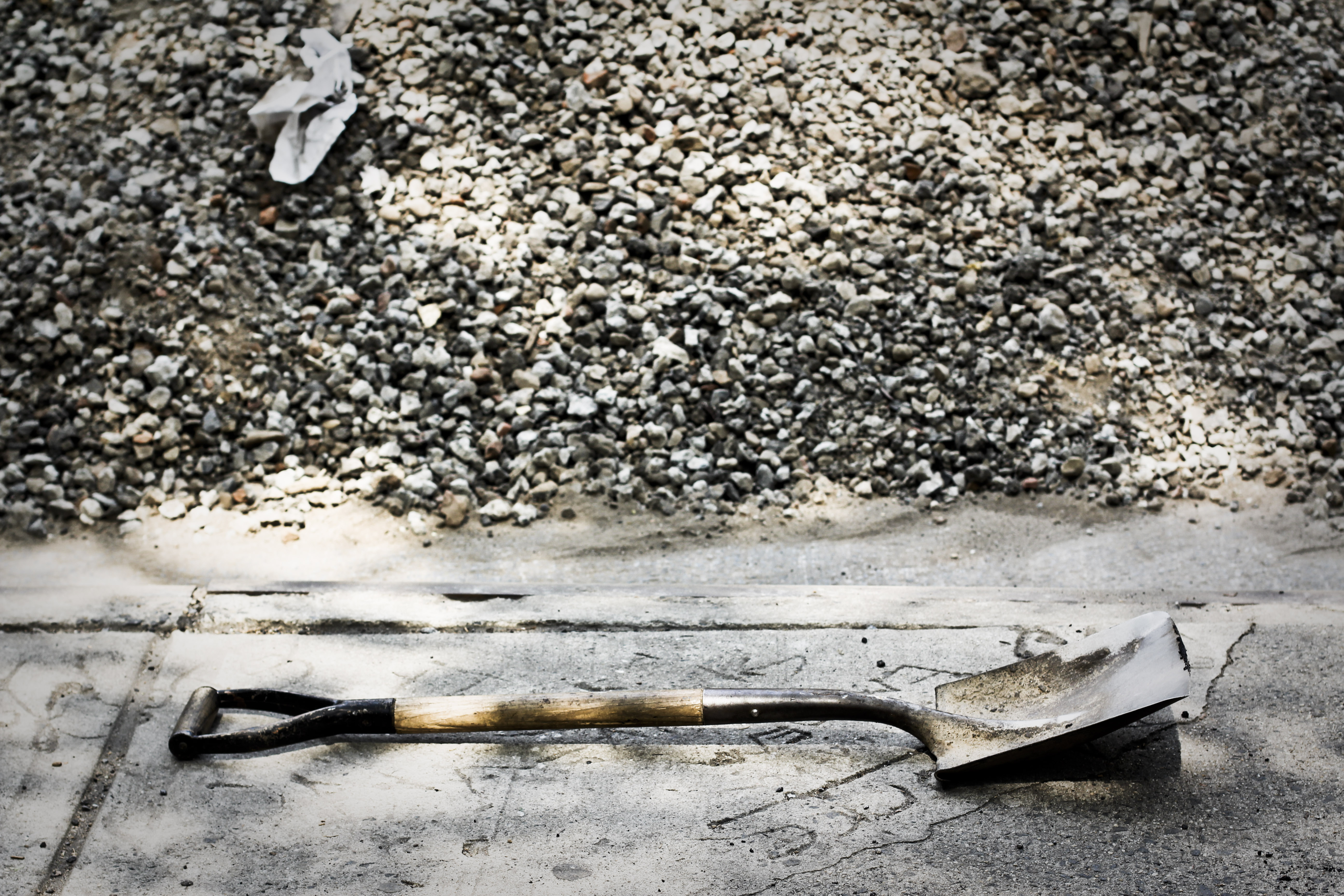 I’m feeling really inspired today. Nothing specific has happened… I am just starting to feel like I’m on the right path toward being a truer, happier me. Is that cheesy? Probably – but you know how I love cheese. I will elaborate more on being me in a minute. First, I took this photo yesterday while walking along Houston. It was just your typical construction site, but something made me stop when I passed by the shovel on the ground in front of the pile of rocks. I don’t know… I just saw something. I did not crop this photo at all… and the only thing I did in Lightroom was add a little bit of contrast, de-saturate the color a little, and add a little subtle vignetting. For me, there’s something about this image. I’m really proud of it.