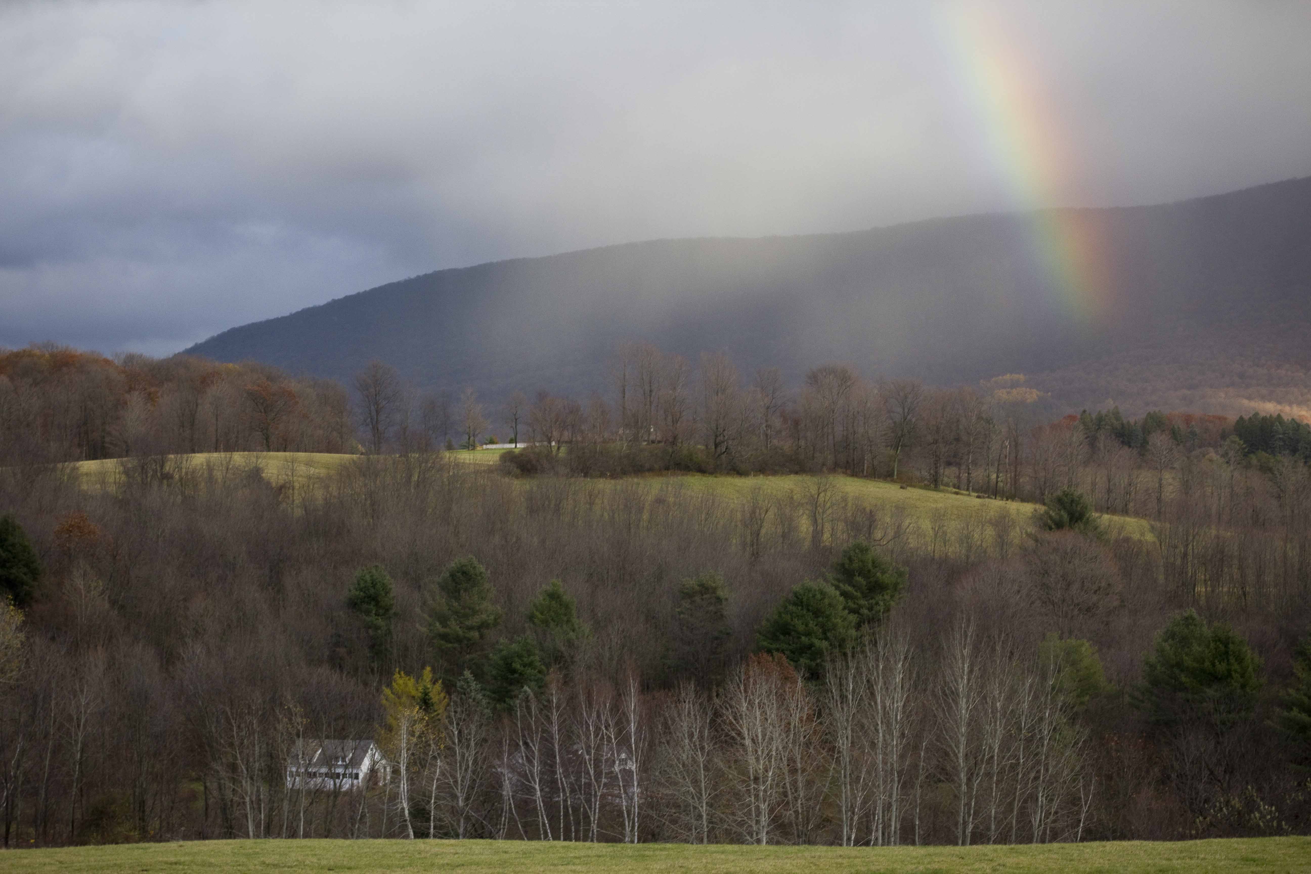 Then we took a drive out past the center of Williamstown to look for this country farm store the waitress at Elf Parlor told us about. Along the way, the sun started to come out a little bit and we saw this gorgeous rainbow form – we pulled over immediately to capture it!