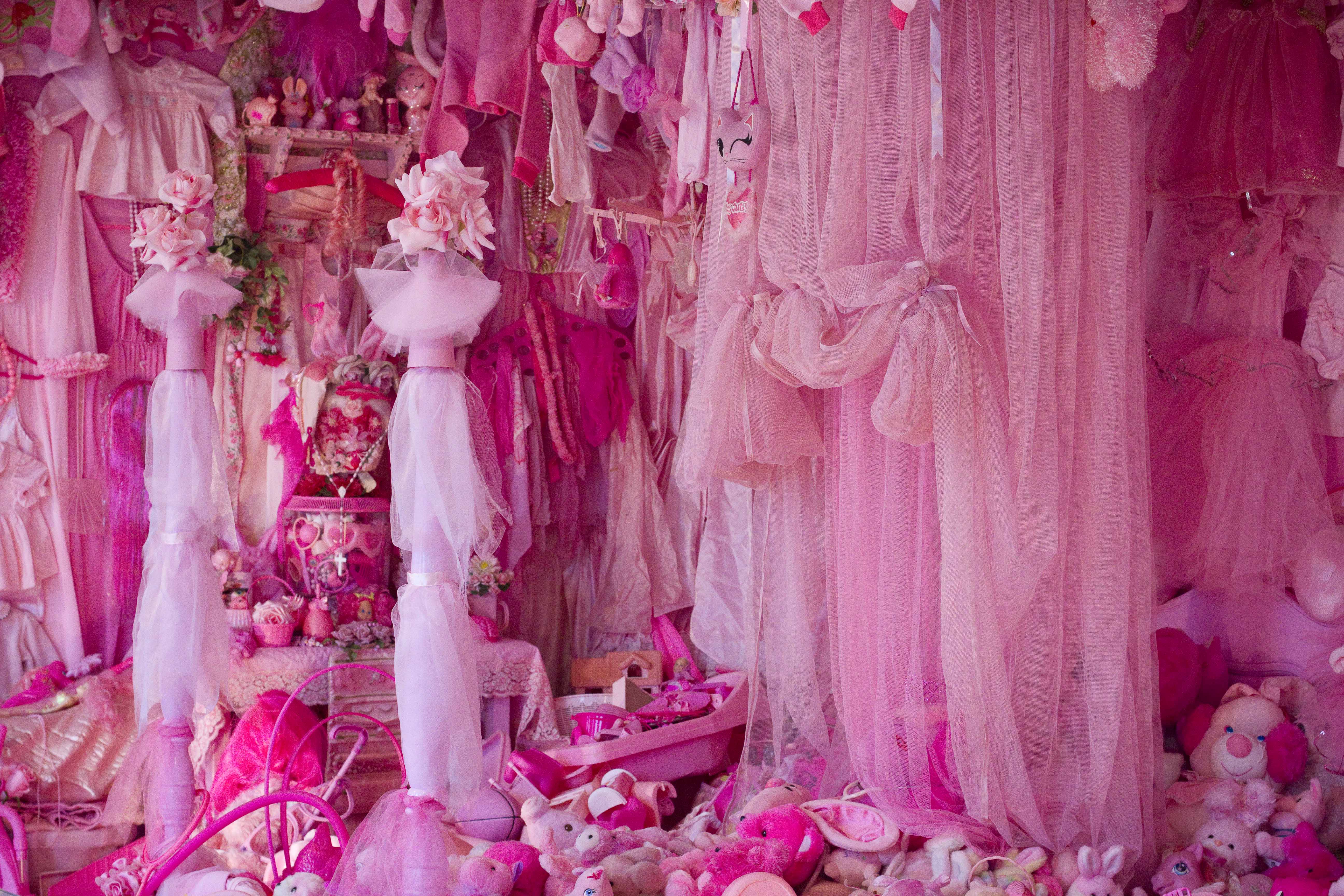 It was interesting (and a tad disturbing) to examine even adult products like deodorants and razors marketed to us in pink and blue packaging! In one section of the gallery space, there was a room set up of everything PINK! My niece Monique would be in heaven in this room!