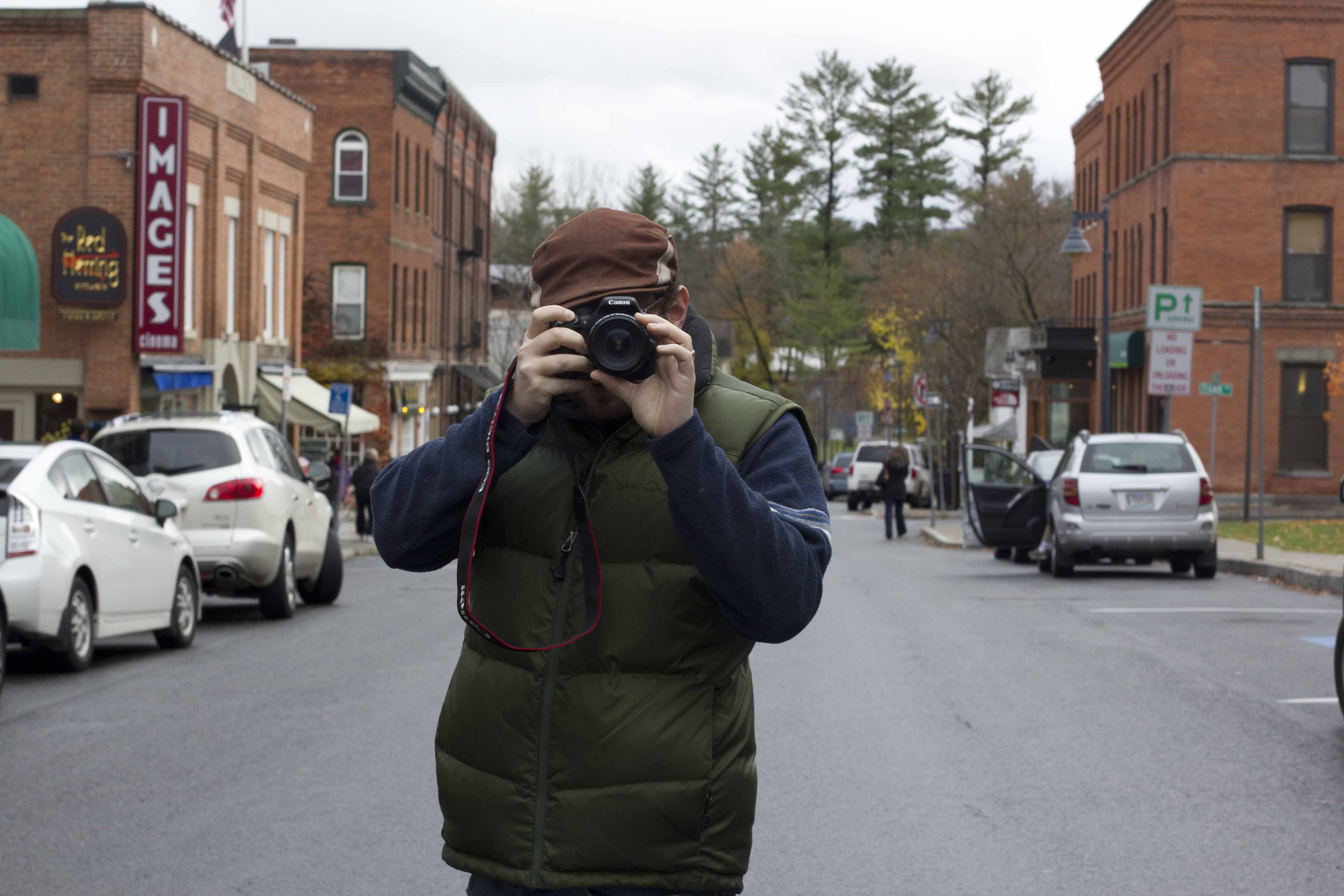 On Friday I had a bit of literal “cabin fever”… from not leaving the house on Thursday, so after a nice home-cooked breakfast by Adam our breakfast chef, we headed into town to explore. We went to a great little coffee shop in N. Adams called Elf Parlor, where we got hot drinks and Adam took advantage of the free wifi for a few minutes to send out some important documents. Then we checked out the little town of Williamstown – super charming. Here is Adam taking my picture standing in the middle of Main Street… as you can see… it was rather quiet.