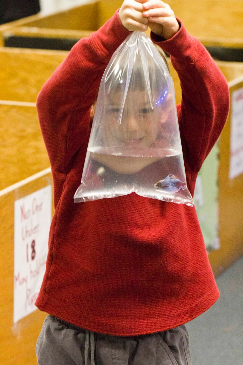 "Zachary's Fish Zachary" - Settings: ISO 6400, f/5.6, 1/60 sec, 100mm lens