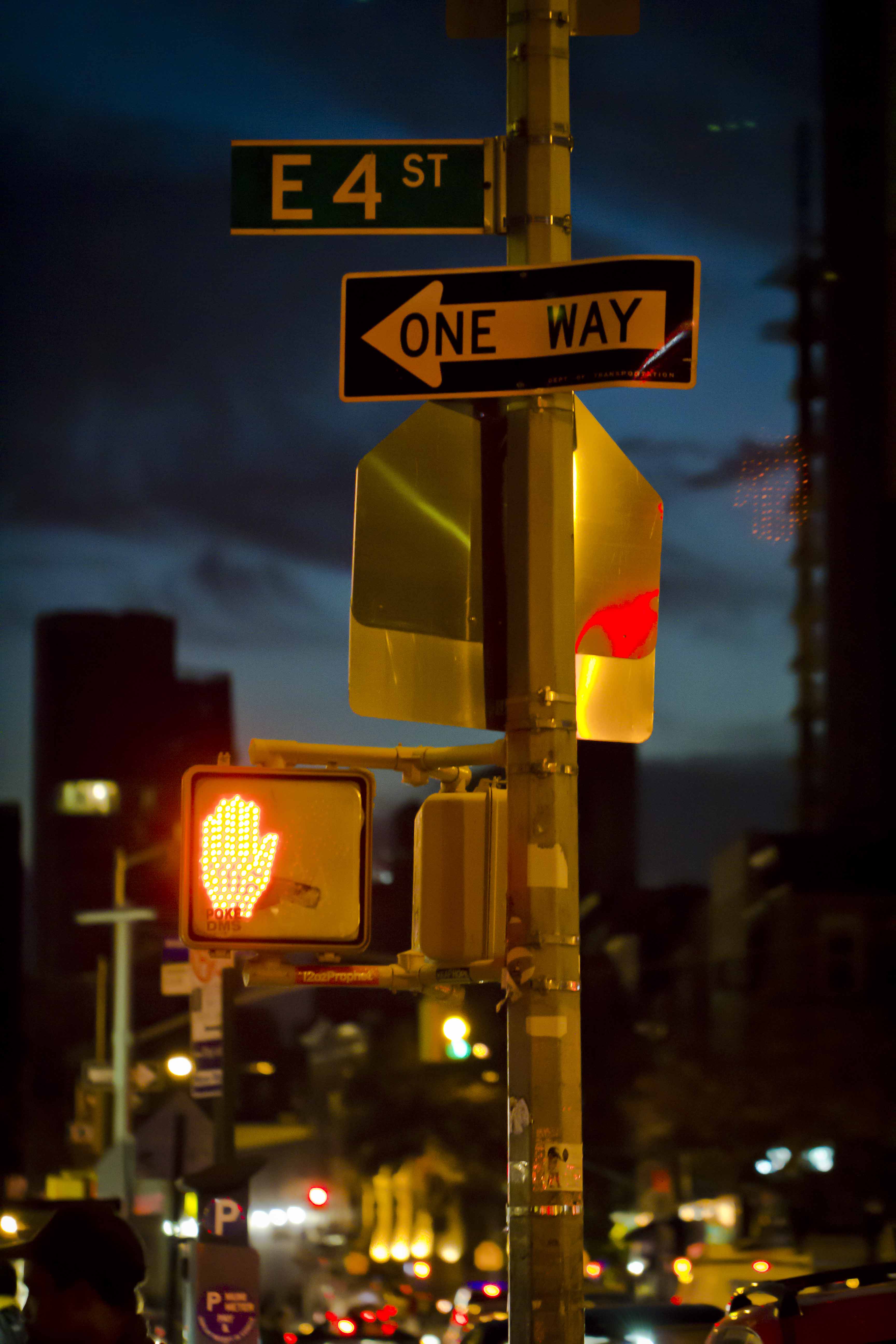 I took this photo on my way home last night – probably around 5:30 or so. The sky was so pretty – with the blue and green jewel tones. Something appealed to me about this sign post with all these signs stacked on top of one another. It’s kind of messy and chaotic… just like the East Village.