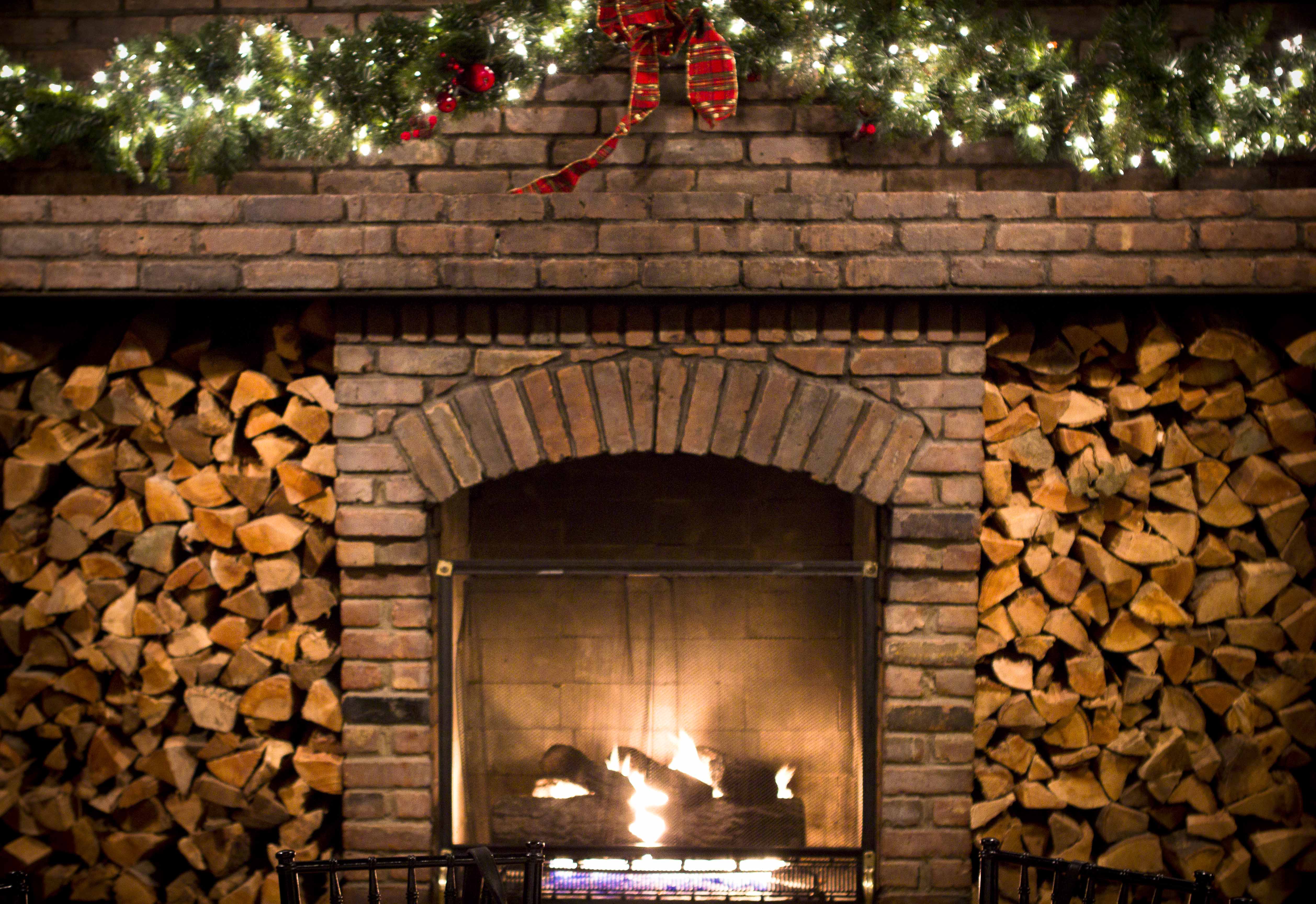 I took this picture at Adam’s company holiday party last night.  It was such a beautiful and cozy fireplace – with all that wood stacked on each side.  If I were to take the photo again to improve upon it, I’d move the table and chairs out of the way (you can see the tops of the chairs in the bottom center of the frame), set up a tripod (it was really dark in there) and move further back in order to capture the entire bow and garland at the top.  I’d also adjust my height – here I was standing straight up and it looks a bit warped to me.