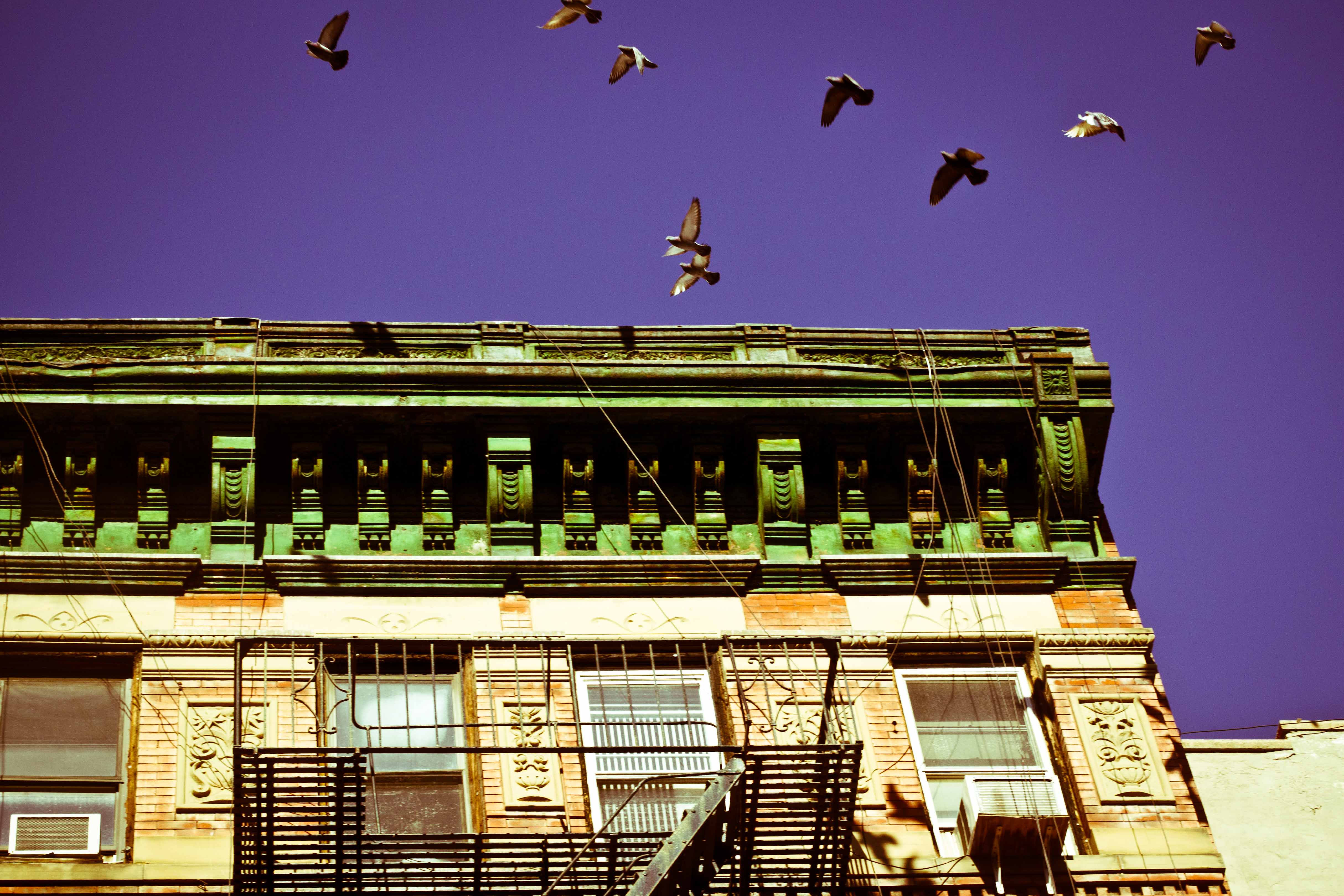 On 7th street in the East Village, there is a big family of birds that hang out on the roof of one of the buildings and every few minutes, they all take off and fly around in unison a few times and then land again. It’s crazy. I’ve actually taken a bunch of photos of them in action and I plan to do a series of three images – maybe with some funky sky colors in the background? Anyway, someone told me that the birds are sort of cared for by this man who has lived in the neighborhood for years and years and he is the one who trained them to fly around like that. I don’t know if it’s true… but it seems just crazy enough to be true in this neighborhood.