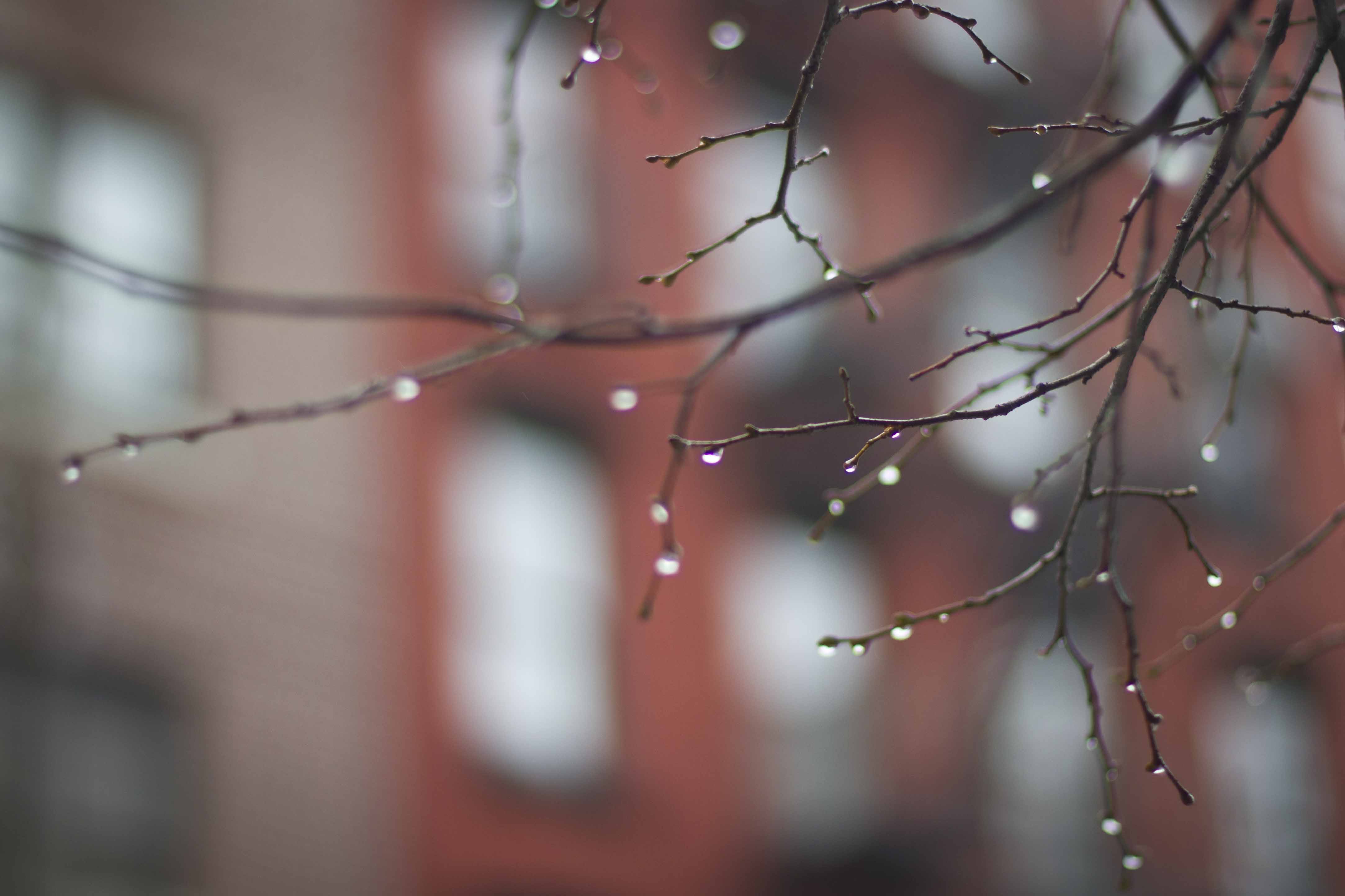 Yesterday it was kind of wet and crappy out. At around four o’clock, I decided to get over it and I headed outside to run a few errands. As I walked down my block, I looked up (I look everywhere now when I walk… a pleasant side effect of studying photography), and up above me in the trees I saw a beautiful sight. There were little water droplets hanging everywhere post rain and the light was reflecting off the little droplets, creating this lovely twinkly effect in the branches. Excited, I snapped a few pictures with my 50mm lens – here is one of those: