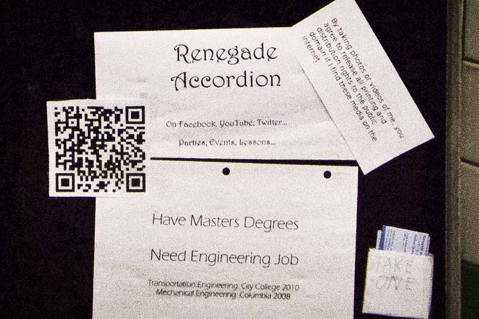 He has a Masters degree in engineering from Columbia and can’t find work in engineering. Crazy. I have to say – he seems to be getting a lot of positive attention doing this! It’s pretty badass if you ask me. It just goes to show you that attitude and creativity (and taking chances) can lead you in all sorts of directions… even when things aren’t working out as you originally planned.