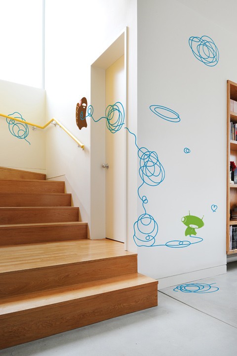 Meanwhile, I just think these stick-on wall decals are a brilliant idea! While researching, I found another site called Blik, which sells a bunch of really cool decals. I think this one is awesome (maybe for the next phase) – I love how the doodles make their way all over the walls and even onto the floor. So fun!