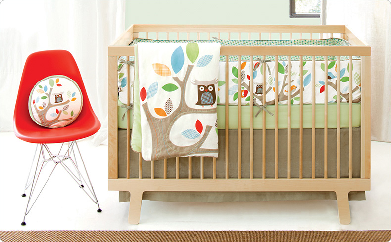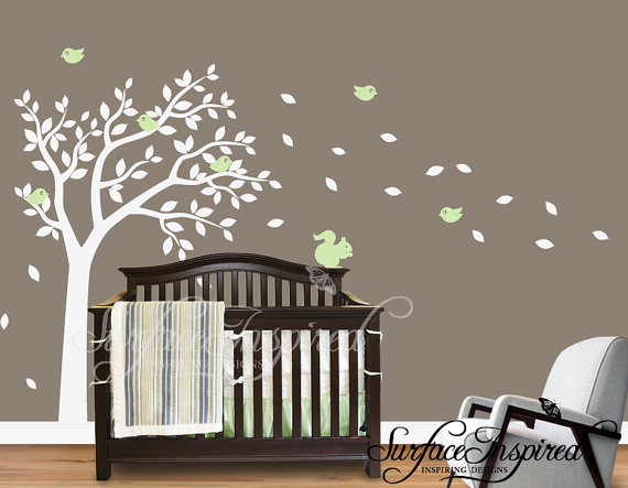I switched up the colors though – I ordered the tree brown, the leaves lime green and the birds orange! I think it’ll go nicely with the bedding we picked out for the crib: